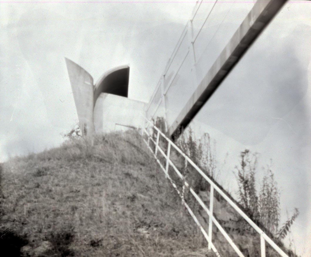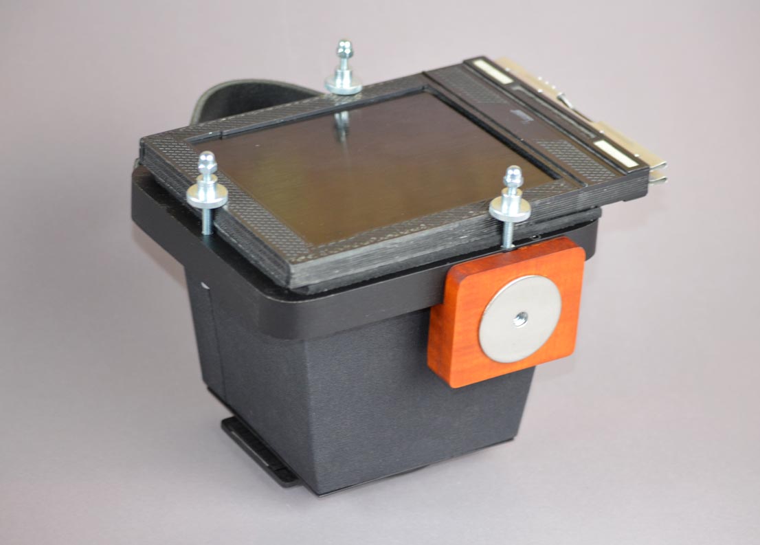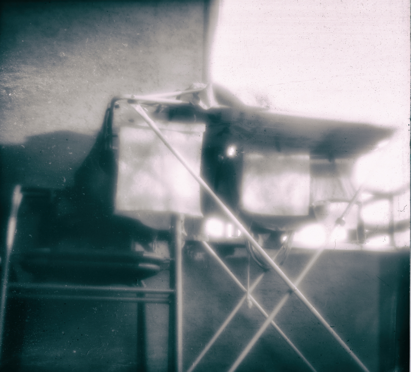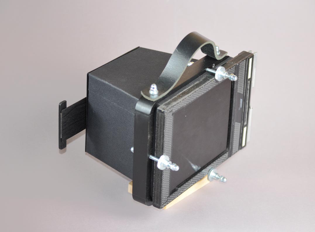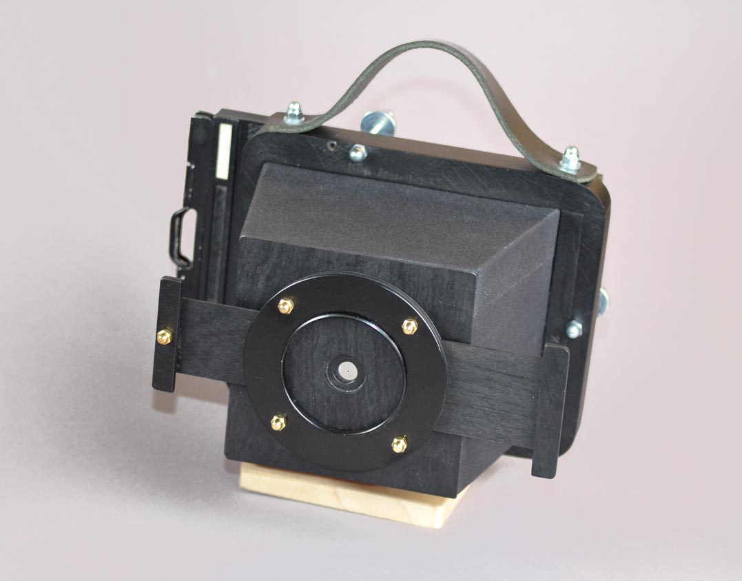 4×5 inch zone plate/pinhole camera. Basic frame is made from black painted wood, cone from painted cardboard covered with canvas.